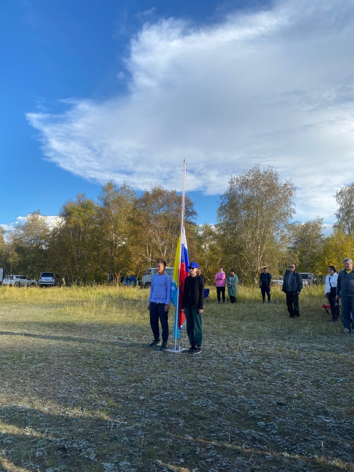 Построение на турслет началось в 10:00 с церемонии поднятия флагов РФ и РТ. Право поднять флаги было предоставлено ученице 11 а Хертек Эчис и ученику 10 а класса Монгушу Артышу. Как прекрасно звучали гимны на открытом воздухе, среди колорита гор!