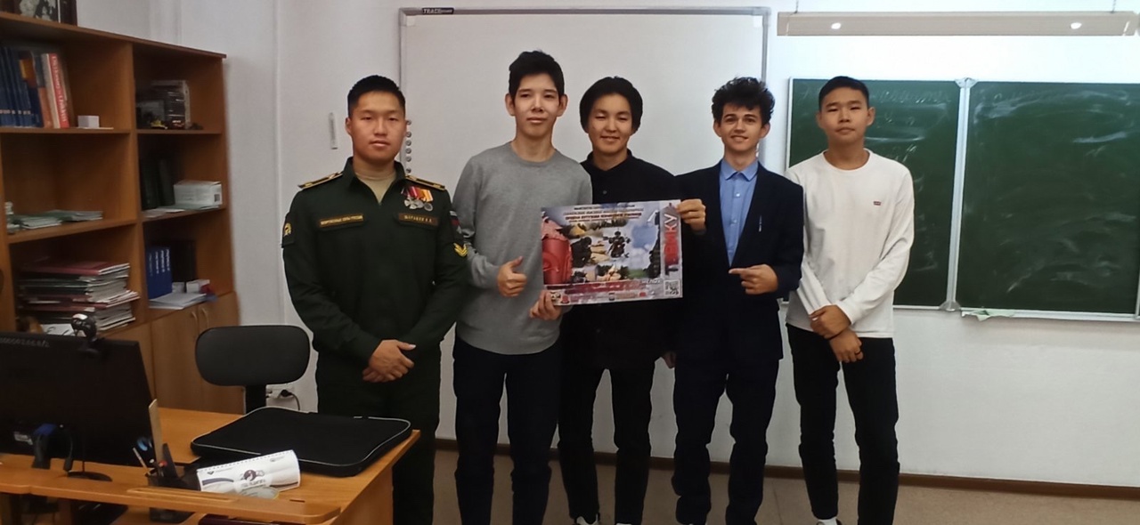 19 октября для юношей 10 «А», 11 «А» классов Государственного лицея Республики Тыва с профориентационной беседой выступил Шаравии Кежик Хулерович, курсант 2-го курса Тюменского Высшего военного командного инженерного училища им. Маршала инженерных войск А.И. Прошлякова, участник СВО, кавалер Ордена Мужества и медали ордена Жукова.