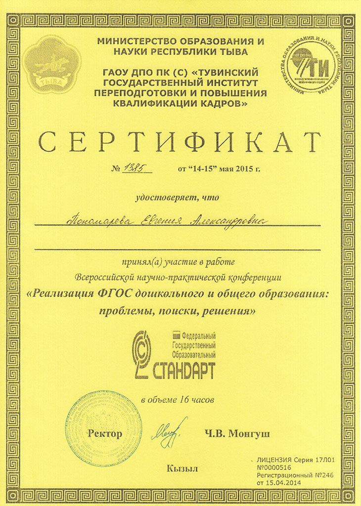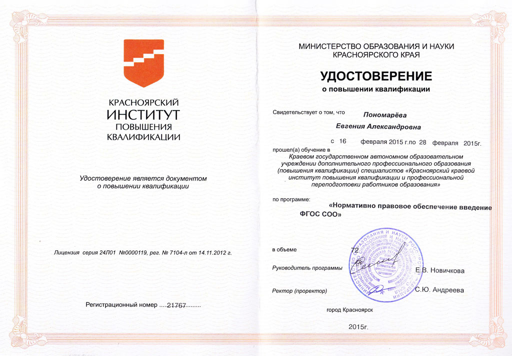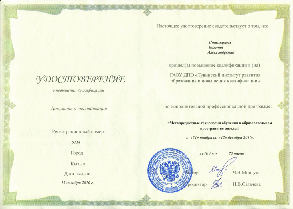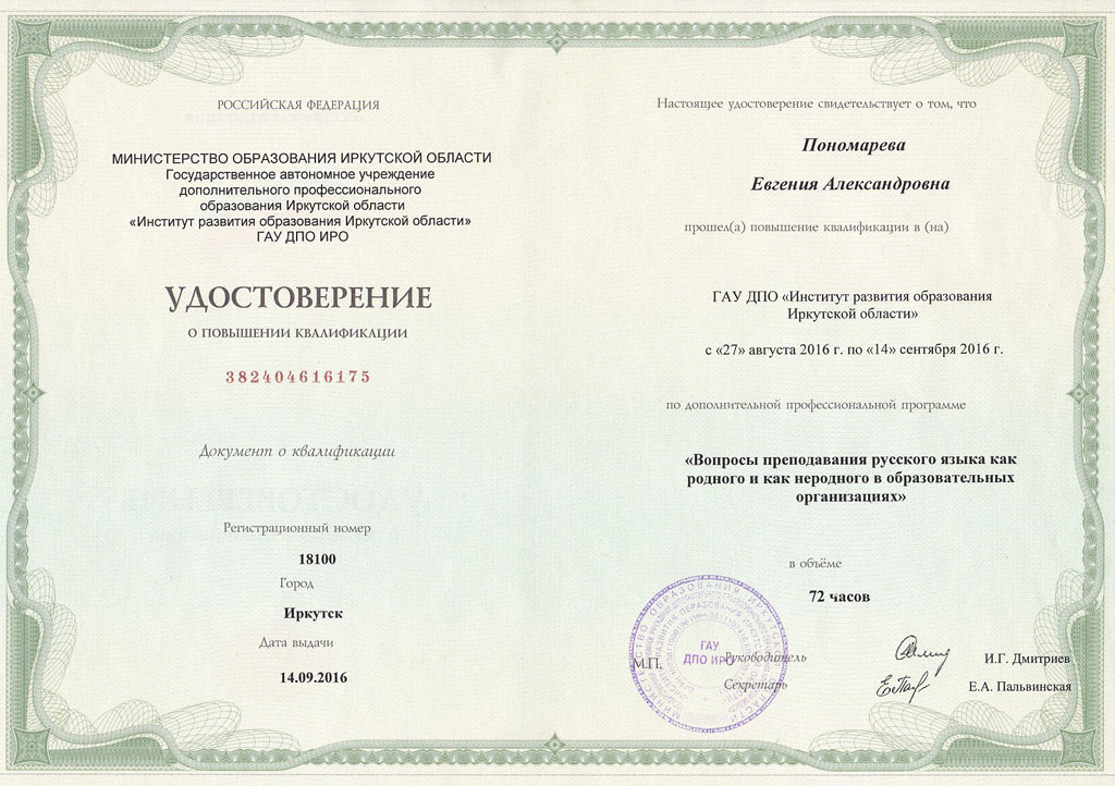 Удостоверение от 14.09.2016 г.  № 382404616175