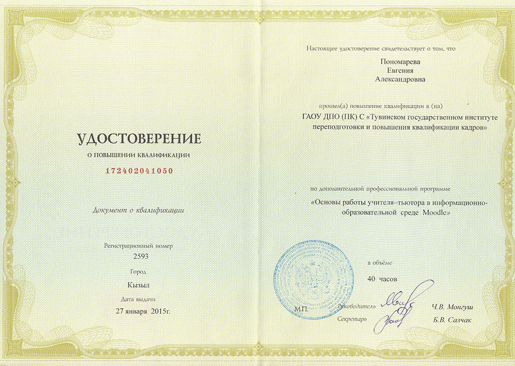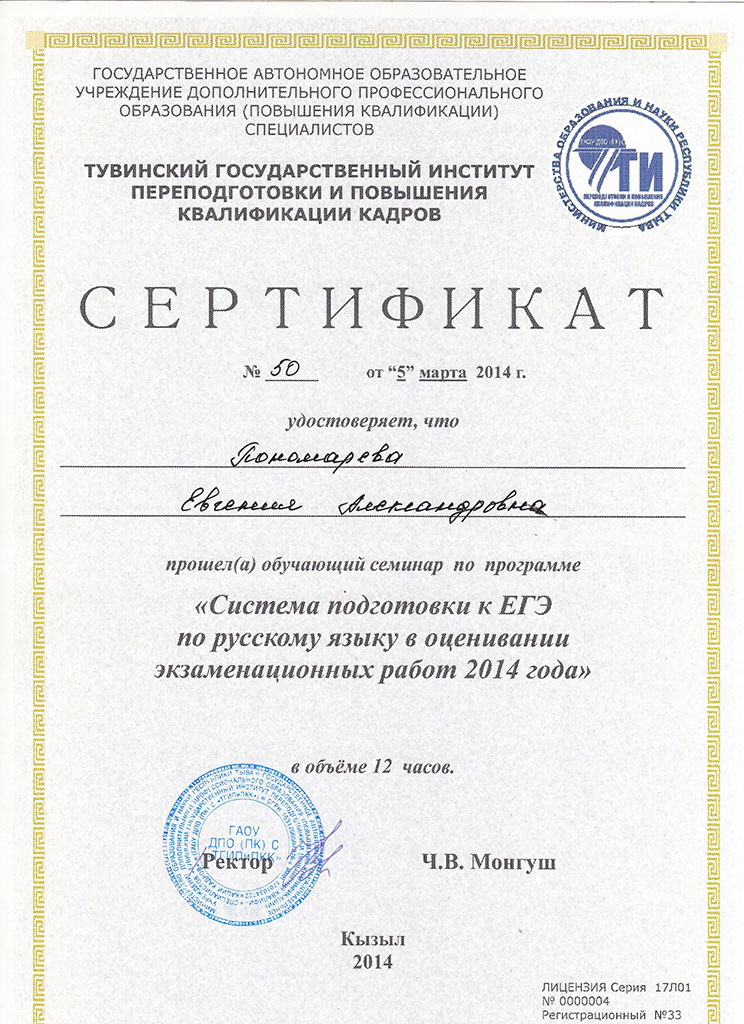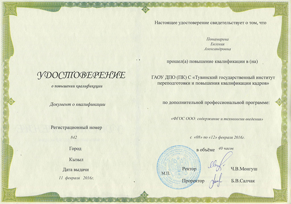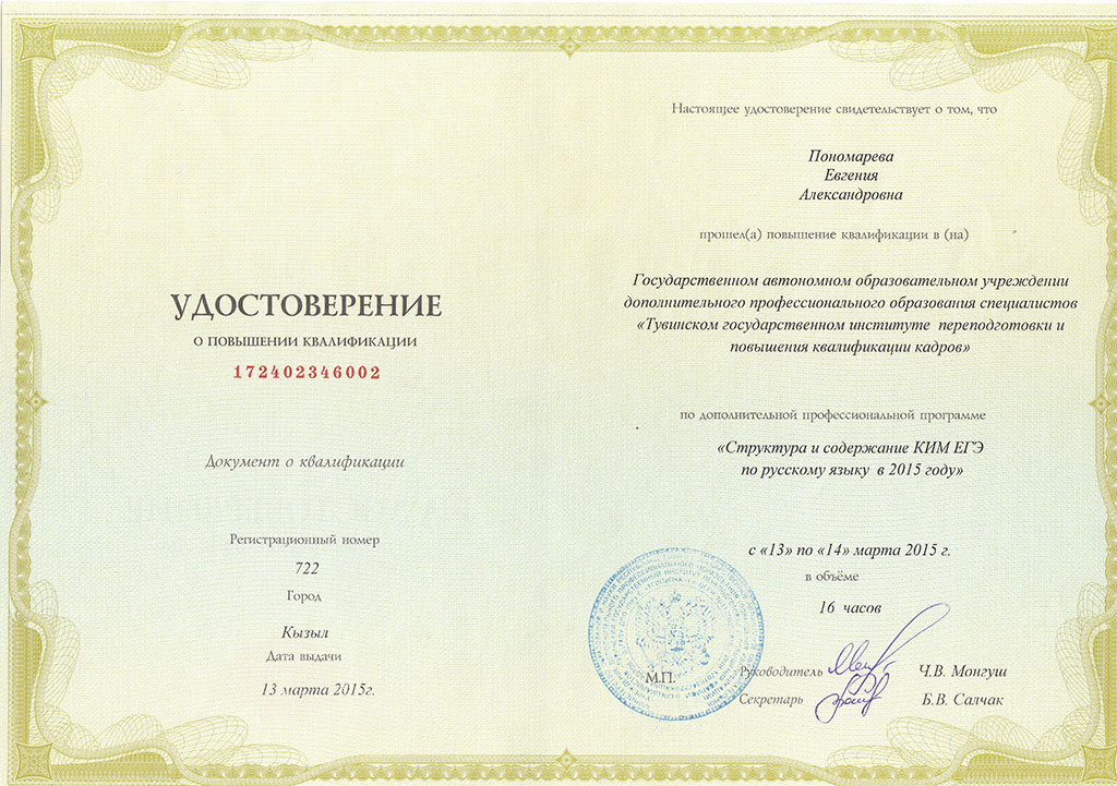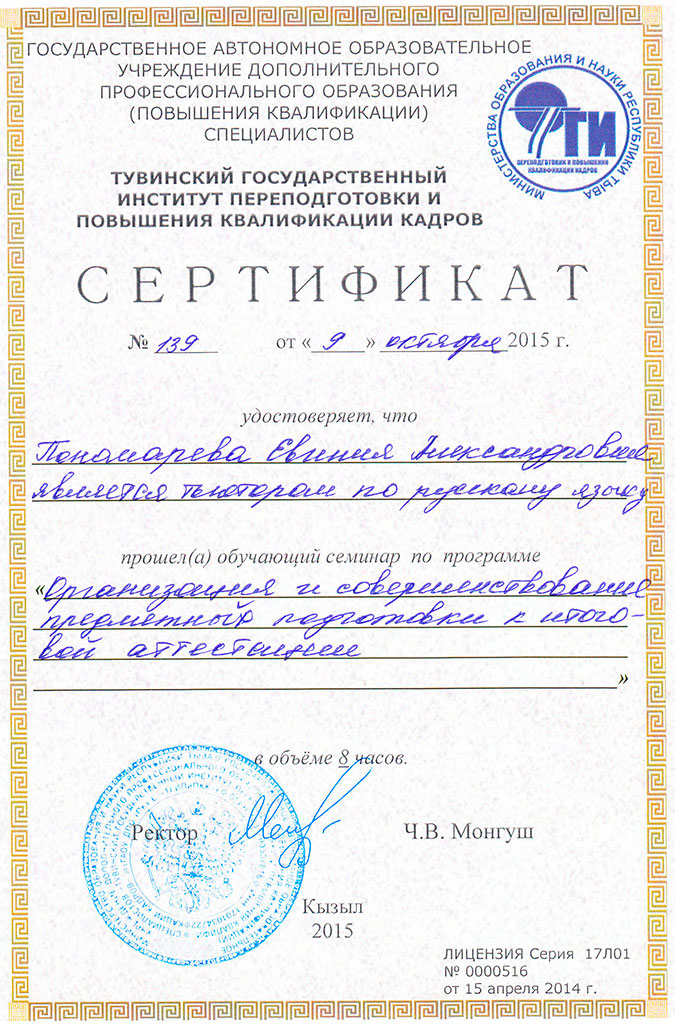 Удостоверение от 14.09.2016 г.  № 382404616175
