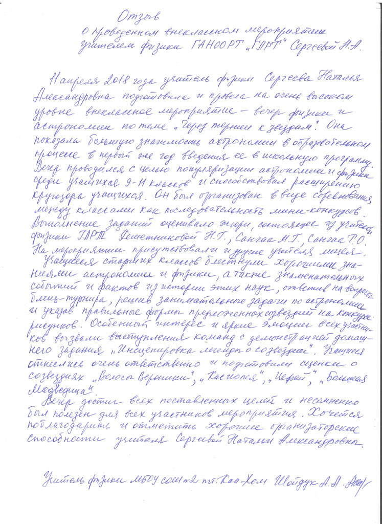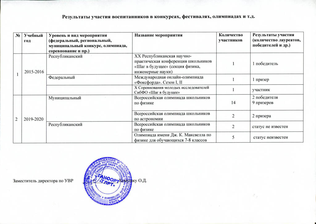| 1 | Член жюри муниципального этапа всероссийской олимпиады школьников по физике | 27.09.2019 г. | Приказ МОНРТ от 27.01.2019 г. № 1245-Д |