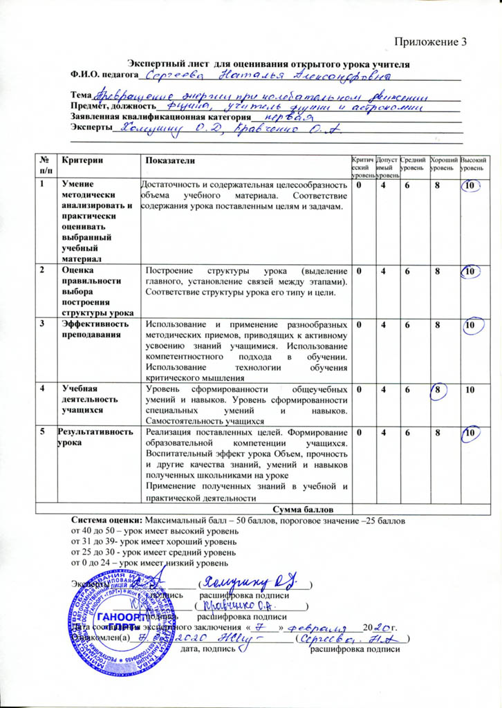 Экспертный лист оценки урока от МО протокол совещания (реквизиты |